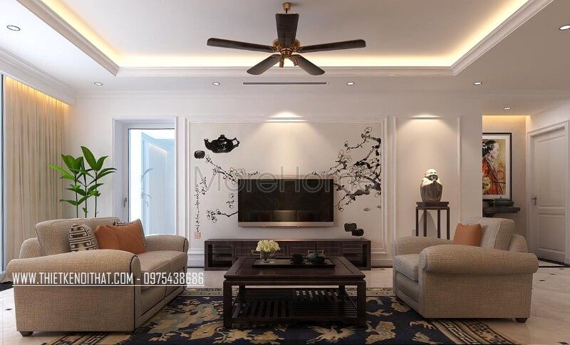 Trang trí nội thất phòng khách chung cư với kệ ti vi gỗ óc chó cao cấp