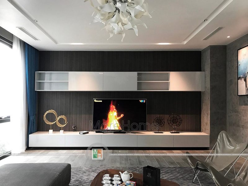 Thi công kệ tivi gỗ công nghiệp hiện đại cho chung cư An Bình city