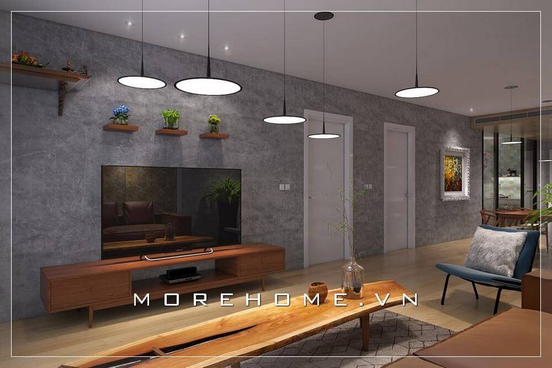 Trang trí phòng khách chung cư ấn tượng với kệ ti vi gỗ công nghiệp