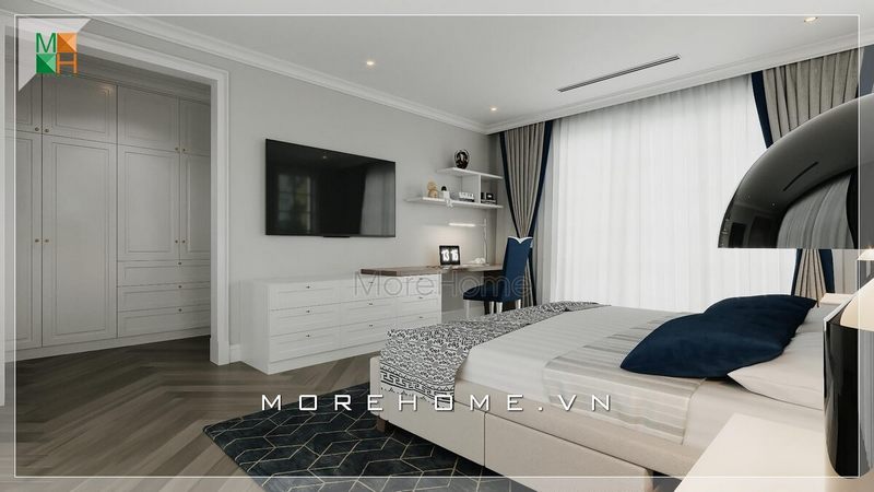 Tủ quần áo kết hợp tủ kệ ti vi hiện đại trong không gian biệt thự, nhà phố độc đáo sáng tạo vừa sang trọng lại tiện lợi, gọn gàng