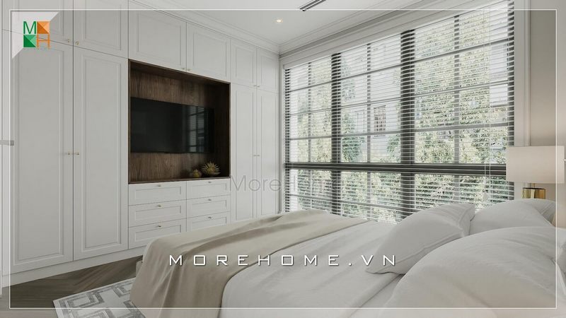Ánh sáng thiết kế với khoảng trắng tối đa giúp không gian phòng ngủ luôn được thông thoáng.