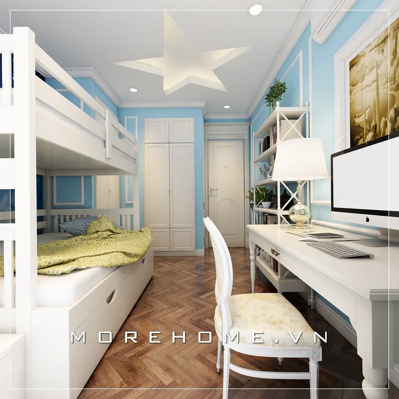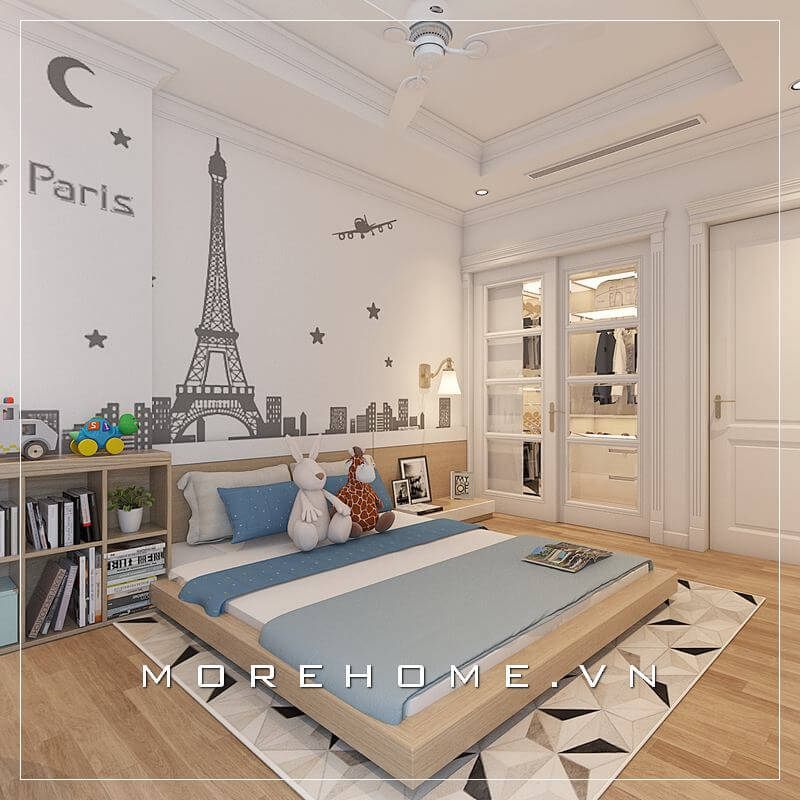 Tủ quần áo bé trai được làm từ gỗ tự nhiên nhập khẩu chắc chắn, gam màu trắng chủ đạo trẻ trung giúp đồng bộ với không gian phòng ngủ, tạo sự liền mạch với nhau.