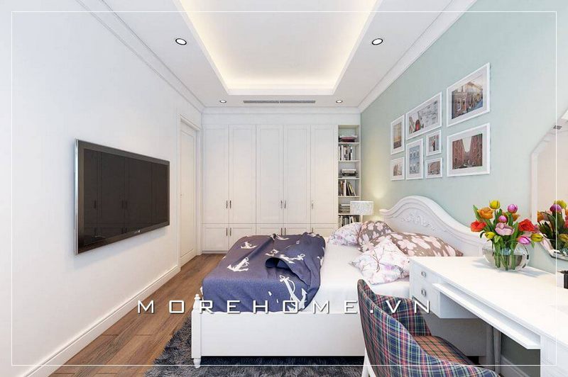 Mẫu tủ quần áo gỗ đẹp màu trắng cho phòng ngủ với thiết kế âm tường mang đến sự sang trọng và tiết kiệm diện tích không gian phỏng ngủ.