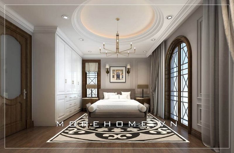 Mẫu tủ quần áo gỗ tự nhiên phun sơn màu trắng sang trọng và tinh tế tại phòng ngủ chung cư cao cấp