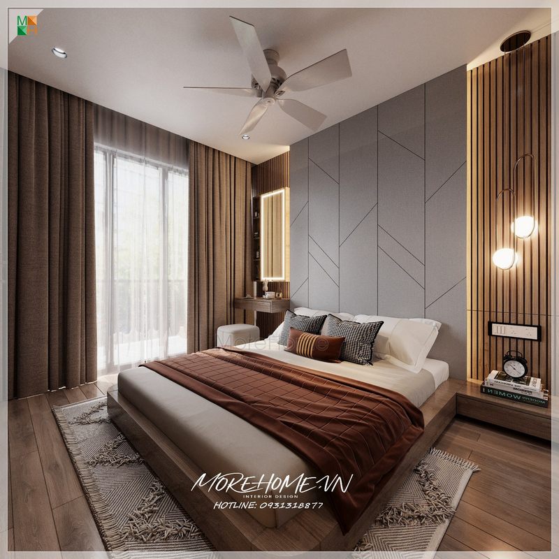 Kiến trúc nội thất phòng ngủ master hiện đại với các thiết bị nổi bật tiện nghi.