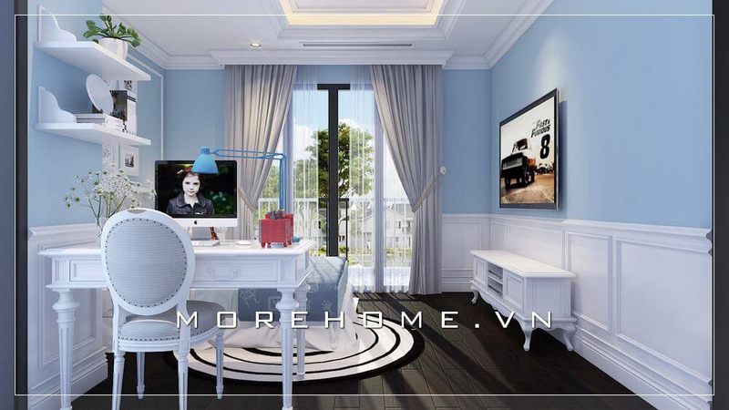 Trang trí phòng ngủ của trẻ em bằng nội thất gỗ tự nhiên với sự kết hợp giữa hai màu sắc xanh và trắng làm nên sự sang trọng và tiện nghi, tạo nên sự cuốn hút và thích thú.